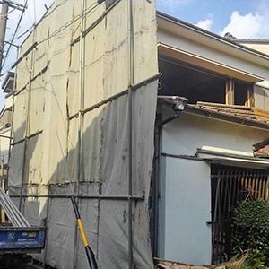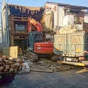 解体工事は少なくとも重機に加え、トラックの出入り、騒音や、振動があります。その為 トラブルなりやすい工事となります