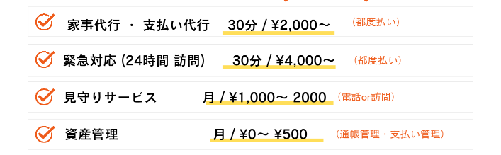 お買い物・手続き代行、書類整理サポート・支払いサポート・金銭管理(預貯金管理)など 様々なオプションがご利用できます。