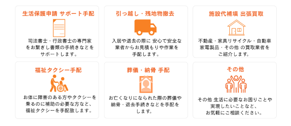 金銭管理(預貯金管理・支払い)葬式手配・火葬・退去申請